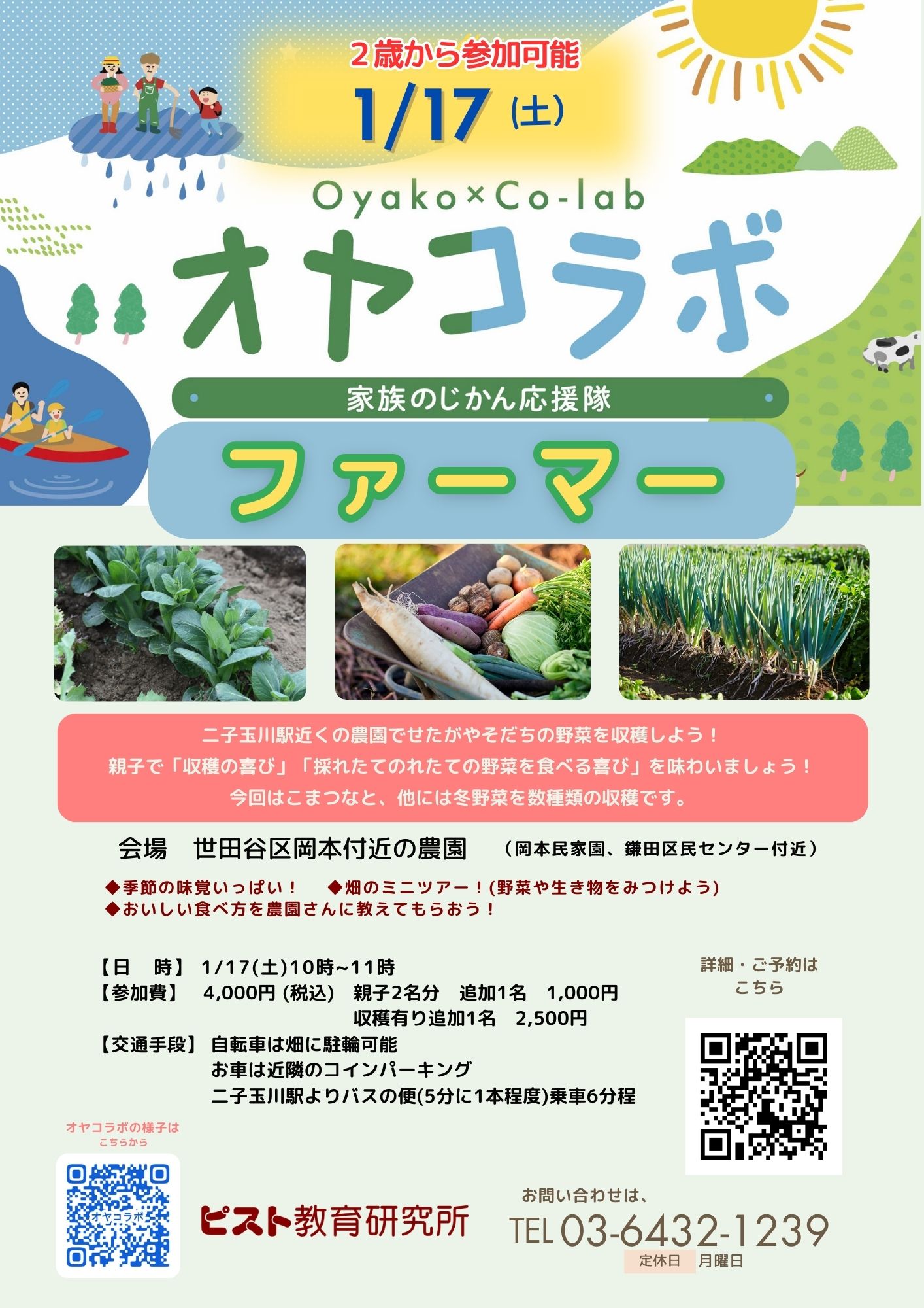 | 1/17(土) | オヤコラボ ファーマー | 親子 | 受付中 |