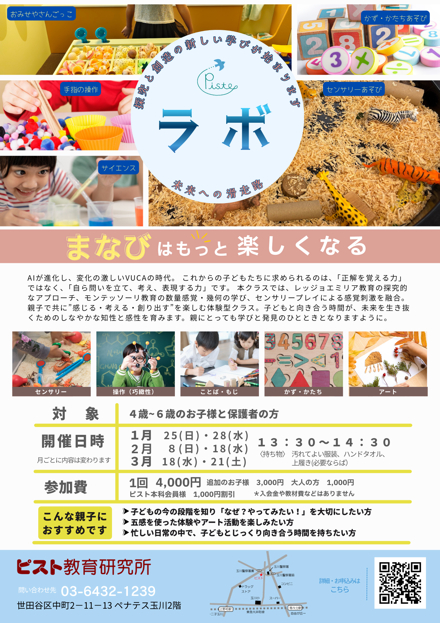| 1/25(日) | ピストラボ 探究と創造の新しい学び | 親子 | 受付中 |