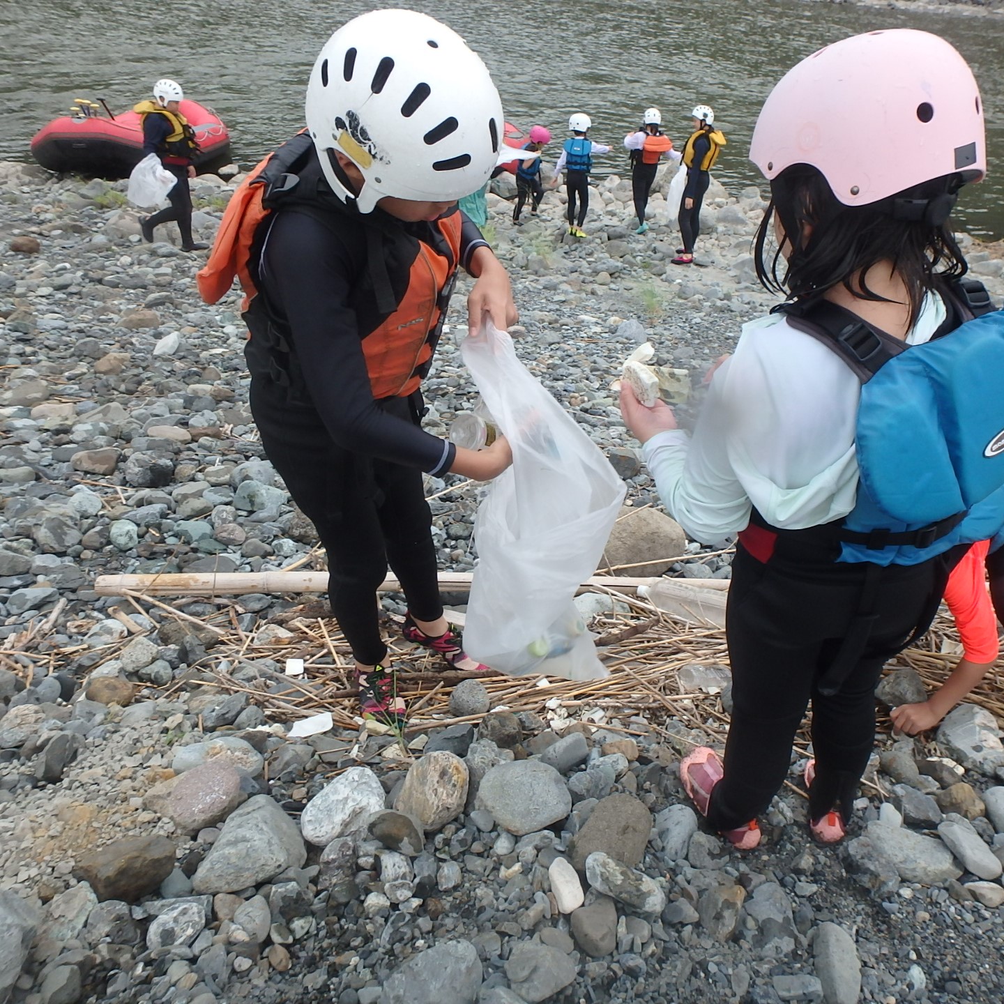 1日目はラフティング&クリーンリバーを行いました。グループで力を合わせて急流をこえたり、時にはボートから飛び込んだりと思いっきり楽しみました。ラフティングで到着した河辺で、クリーンリバーも実施。短時間でしたが、およそ10袋以上のゴミを集めることができました。夕食は、ジビエBBQ。早川で採れた野菜や、猪肉、鹿肉をお腹いっぱい食べました。