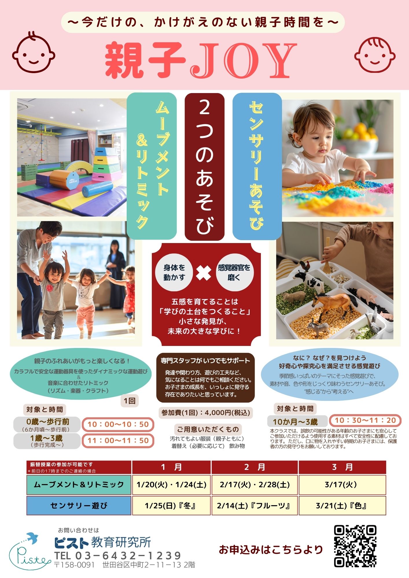 | 1/24(土) | 親子JOY~(ムーブメント&リトミック) | 0歳~歩行前・1歳~3歳 | 受付中 |